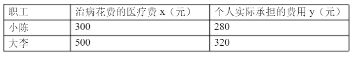 设一职工当年治病花费的医疗费为 $\mathrm{x}$ 元, 他个人实际承担的费用(包括医疗费个人承担的部 分和缴纳的医疗公积金 $\mathrm{m}$ 元) 为 $\mathrm{y}$ 元