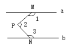 如图, $a // b, M 、 N$ 分别在 $a 、 b$ 上, $P$ 为两平行线间一点, 那么 $\angle 1+\angle 2+\angle 3=$