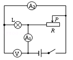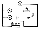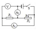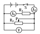 如图,当滑片$P$向右移动时,$A_1$表、$A_2$表和$V$表将如何变化?