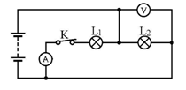 如图所示电路中,开关闭合,灯泡L1和灯泡L2是 ________ 联连接的。当开关K断开时,电压表的示数将 ________ ,电流表的示数将 ________ (选填“增大”、“不变”或“减小”)。