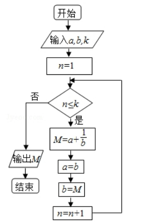 执行如图的程序框图, 若输入的 $a, b, k$ 分别为 $1,2,3$, 则输出的