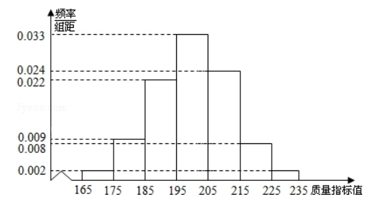 (II)由直方图可以认为, 这种产品的质量指标值 Z 服从正态分布 $\mathrm{N}\left(\mu, \sigma^{2}\right)$, 其中 $\mu$ 近似为样本平均数 $\mathrm{x}, \sigma^{2}$ 近似为样本方差 $s^{2}$.