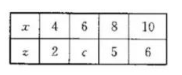 为了反映城市的人口数量 $x$ 与就业压力指数 $y$ 之间的变量关系, 研究人员选择使用非线性回归模型 $y=\mathrm{e}^{-\frac{9}{10}} \cdot \mathrm{e}^{\frac{7}{10} x}$ 对所测数据进行拟合, 并设 $z=\ln y$, 得到的数据如表所示, 则 $c=$