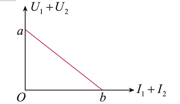 (4) 满足 (3) 条件, 电流表 $\mathrm{A}_1$ 示数用 $I_1$ 表示, 电流表 $\mathrm{A}_2$ 示数用 $I_2$ 表示。作图像如图所示, 图中 $a 、 b$ 为已知量, 则干电池的电动势 $E=$ , 内电阻 $r=$