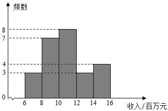 $a$. 甲城市邮政企业 4 月份收入的数据的频数分布直方图如下 (数据分成 5 组: $6 \leqslant x < 8$, $8 \leqslant x < 10, \quad 10 \leqslant x < 12, \quad 12 \leqslant x < 14,14 \leqslant x \leqslant 16)$;