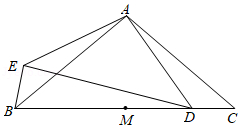 如图, 在 $\triangle A B C$ 中, $A B=A C, \angle B A C=\alpha, M$ 为 $B C$ 的中点, 点 $D$ 在 $M C$ 上, 以点 $A$ 为中 心, 将线段 $A D$ 顺时针旋转 $\alpha$ 得到线段 $A E$, 连接 $B E, D E$.