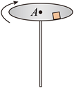 “转碟”是传统的杂技项目,如图所示,质量为m的发光物体放在半径为r的碟子边缘,杂技演员用杆顶住碟子中心,使发光物体随碟子一起在水平面内绕A点做匀速圆周运动。当角速度为 $w_0$ 时,碟子边缘看似一个光环。求此时发光物体的速度大小 $v_0$和受到的静摩擦力大小f。