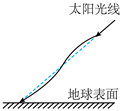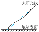 地球表面附近空气的折射率随高度降低而增大,太阳光斜射向地面的过程中会发生弯曲。下列光路图中能描述该现象的是