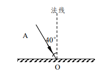 . 根据给出的入射光线 $\mathrm{AO}$ 画出其反射光线 $\mathrm{OB}$, 并标出反射角及其大小。