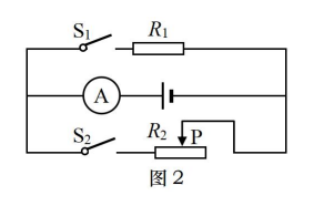 如图 2 所示, 电阻 $R_1$ 与 $R_2$ 接入电路的阻值相同, $\mathrm{S}_1$ 断开, $\mathrm{S}_2$ 闭合; 下列操作后, 一定能 使电流表示数变大的是