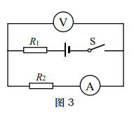 在图 3 所示的电路中, 电源电压为 $U_0$, 电阻 $R_1$ 阻值为 $R_0 、 R_2$ 的阻值为 $2 R_0$ 。 闭合开关 $\mathrm{S}$, 发现电流表示数有变化。已知电路中仅有一处故障, 且只发生在 电阻 $R_1$ 或 $R_2$ 上。请写出闭合开关 $\mathrm{S}$ 后的电流表和电压表的示数及对应的故障