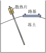 在青藏铁路的建设中,我国科技工作者将“热棒”插入冻土,成功解决了“冻土工程”这一世界性难题。如图所示,热棒是碗口粗细的铁棒,高出地面约2m,在路基下还埋有5m,整个棒体是中空的,里面封装有适量液氨。热棒的工作原理是:当路基温度上升时,液氨 ________ 热量变成气态氨上升到热棒的上端;通过散热片散热,气态氨发生 ________ (填物态变化名称)又沉入了棒底。这样不断循环,避免冻土融化造成路基崩塌。