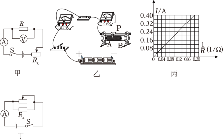 (7)小刚学习了伏安法测电阻后,用刻度尺、电流表和已知最大阻值为R1的滑动变阻器来测量未知电阻Rx的阻值。他设计了如图丁所示电路,请你帮他完成下列步骤: