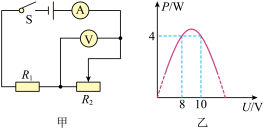 如图甲所示电路,电源电压恒定,R1为定值电阻,滑动变阻器R2铭牌上标有“120Ω 0.8A”的字样,电流表量程0~0.6A,电压表量程0~15V。在保证电路安全的前提下,移动滑动变阻器滑片,经测量分析,得出R2的电功率P与其两端电压U的关系如图乙。则下列说法正确的是