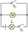 张明同学发现,未戴头盔骑行“共享助力车”存在安全隐患。于是他设计以下改进方案:在头盔内加装遥控设备,控制下列助力车工作电路中开关S2的通断。骑行前,扫码成功后开关S1闭合,指示灯L亮,但电机不工作;从车头取出头盔并戴上后,头盔内遥控设备遥控S2闭合,电动机才通电工作;若只戴头盔不扫码则无法骑行。下列电路符合以上设计要求的是
