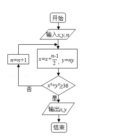 执行下面的程序框图, 如果输入的 $x=0, y=1, n=1$, 则输出 $x, y$ 的 值满足()