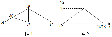 |如图 1, 在 $\triangle A B C$ 中, $A B=B C, B D \perp A C$ 于点 $D(A D>B D)$. 动点 $M$ 从 $A$ 点出发, 沿折 线 $A B \rightarrow B C$ 方向运动, 运动到点 $C$ 停止. 设点 $M$ 的运动路程为 $x, \triangle A M D$ 的面积为 $y, y$ 与 $x$ 的函数图象如图 2, 则 $A C$ 的长为 $(\quad)$