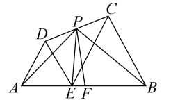 如图, $E$ 是线段 $A B$ 上一点, $\triangle A D E$ 和 $\triangle B C E$ 是位于直线 $A B$ 同侧的两个等边三角形, 点 $P, F$ 分别是 $C D, A B$ 的中点. 若 $A B=4$, 则下列结论错误的是