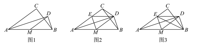 在 Rt $\triangle A B C$ 中, $M$ 是斜边 $A B$ 的中点, 将线段 $M A$ 绕点 $M$ 旋转至 $M D$ 位置, 点 $D$ 在直线 $A B$ 外, 连接 $A D, B D$.