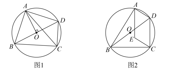 (2) 如图 2, $E$ 为 $\odot O$ 内一点, 满足 $A E \perp B C, C E \perp A B$, 若 $B D=3 \sqrt{3}, A E=3$, 求弦 $B C$ 的长.