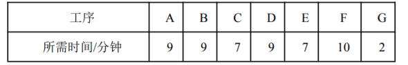 学校组织学生参加木艺艺术品加工劳动实践活动. 已知某木艺艺术品加工完成共需 $\mathrm{A}, \mathrm{B}, \mathrm{C}, \mathrm{D}, \mathrm{E}$, $F, G$ 七道工序, 加工要求如下: