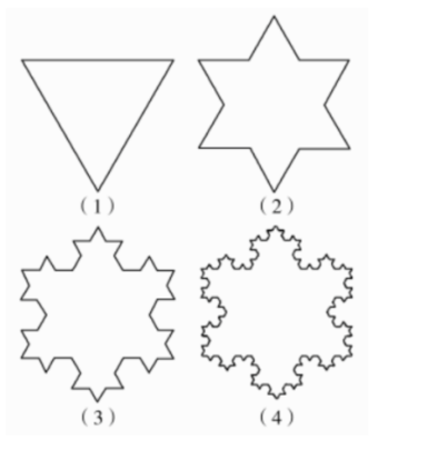 将正三角形 (1) 的每条边三等分, 并以中间的那一条 线段为底边向外作正三角形, 然后去掉底边, 得到图 (2); 将图 (2) 的每条边三等分, 并以中间的那一条线段为底边 向外作正三角形, 然后去掉底边, 得到图(3); 如此类推, 将图 $(n)$ 的每条边三等分, 并以中间的那一条线段为底边 向外作三角形, 然后去掉底边, 得到图 $(n+1)$. 上述作 图过程不断的进行下去, 得到的曲线就是美丽的雪花曲 线. 若图 (1) 中正三角形的边长为 1 , 则图 $(n)$ 的周长为 ________ , 图 $(n)$ 的面积为 ________