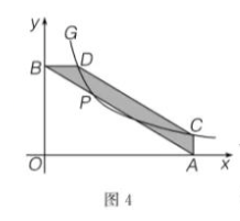 如图 4, 点 $P$ 是函数 $y=\frac{36}{x}(x>0)$ 的图象 $G$ 上的一点, 过点 $P$ 的直线分别交 $x$ 轴、 $y$ 轴于 $A 、 B$ 两点. 过 $A$作 $x$ 轴的垂线, 交 $G$ 于点 $C$, 过 $B$ 作 $y$ 轴垂线, 交 $G$ 于点 $D, P A=$ $2 P B$, 这时四边形 $A C-DB$ 面积