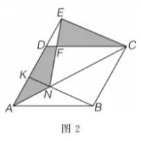 如图 2 , 点 $N$ 在平行四边形 $A B C D$ 的对角线 $A C$ 上, 点 $E$ 在 $A D$ 的延长线上, 且 $C E$ $/ / B N, E N$ 交 $C D$ 于点 $F, \triangle C E F$ 的面积是 2019 , 则四边形 $A N F D$ 的面积