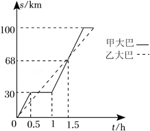 $\text{D.}$ 甲大巴停留前的平均速度是 $60 \mathrm{~km} / \mathrm{h}$