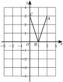 如图, 在平面直角坐标系中, 形如英文字母 “ $V$ ” 的图形三个端点的坐标分别是 $A$ $(2,3), B(1,0), C(0,3)$.