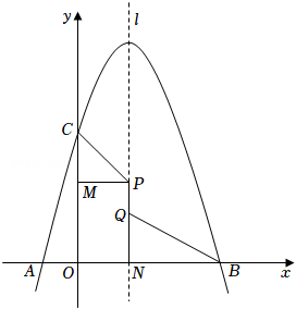 如图, 抛物线 $y=-x^{2}+3 x+4$ 与 $x$ 轴交于 $A, B$ 两点 (点 $A$ 位于点 $B$ 的左侧), 与 $y$ 轴交于 $C$ 点, 抛物线的对称轴 $l$ 与 $x$ 轴交于点 $N$, 长为 1 的线段 $P Q$ (点 $P$ 位于点 $Q$ 的上 方) 在 $x$ 轴上方的抛物线对称轴上运动.