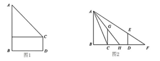 (2)我国古代数学家赵爽利用影子对物体进行测量的方法, 在至今仍有借鉴意义图 2 所示, 现将一高度为 2 米的木杆 $C G$ 放在灯杆 $A B$ 前, 测得其影长 $C H$ 为 1 米, 再将木杆沿着 $B C$ 方向移动 $1.8$ 米至 $D E$ 的位置, 此时测得其影长 $D F$ 为 3 米, 求灯杆 $A B$ 的高度