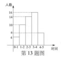为了解学生的阅读情况, 对某校六年级部分学生的阅读情况展开调查, 并列出了相 应的频数分布直方图(如图所示)(每组数据含最小值, 不含最大值)(0-1 小时 4 人, 1-2 小时 10 人, 2-3 小时 14 人, 3-4 小时 16 人, 4-5 小时 6 人), 若共有 200 名学生, 则该学校六年级学生阅读时间不低于 3 小时的人数是