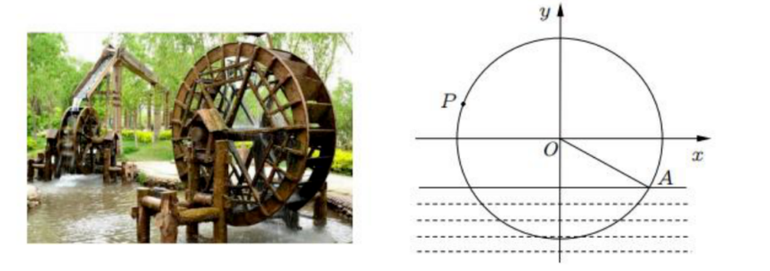 水车在古代是进行灌溉引水的工具, 是人类的一项古老的发明, 也是人类利用自然和改 造自然的象征. 如图一个半径为 $R \mathrm{~m}$ 的水车, 当水车上水斗 $A$ 从水中浮现时开始计算时间, 点 $A$ 沿圆周按逆时针方向匀速旋转, 且旋转一周用时 60 秒, 经过 $t$ 秒后, 水斗旋转到点 $P$, 已知 $A(2 \sqrt{3},-2)$, 设点 $P$ 的坐标为 $(x, y)$, 歩纵坐标满足 $y=f(t)=R \sin (\omega t+\varphi)(t \geqslant 0, \omega>\left.0,|\varphi| < \frac{\pi}{2}\right)$.