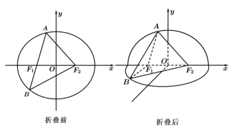 (2) 如图, 将平面 $x O y$ 沿 $x$ 轴折叠, 使 $y$ 轴正半轴和 $x$ 轴所确定的半平面 (平面 $A F_1 F_2$ ) 与 $y$轴负半轴和 $x$ 轴所确定的半平面 (平面 $B F_1 F_2$ ) 互相垂直.