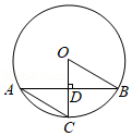 如图, $\odot O$ 的半径 $O B$ 为 $4, O C \perp A B$ 于点 $D, \angle B A C=30^{\circ}$, 则 $O D$ 的长是 ( )