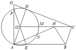 如图, 已知 $A D, E F$ 是 $\odot O$ 的直径, $A D=6 \sqrt{2}, \odot O$ 与 $\square O A B C$ 的边 $A B, O C$ 分别交于点 $E, M$, 连接 $C D$ 并延长, 与 $A F$ 的延长线交于点 $G, \angle A F E=\angle O C D$.