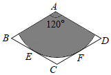 如图, 从一块边长为 $2, \angle A=120^{\circ}$ 的菱形铁片上剪出一个扇形, 这 个扇形在以 $A$ 为圆心的圆上 (阴影部分), 且圆弧与 $B C, C D$ 分别相切于点 $E, F$, 将剪 下来的扇形围成一个圆雉, 则圆雉的底面圆半径是
