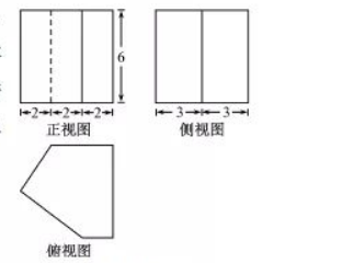 祖晅是我国南北朝时代的伟大科学家. 他提出的 “幂势既同, 则积不容易” 称为祖㫜原理, 利用该原理可以得到柱体体积公式 $V$ 梇伡 $=S h$, 其中 $S$ 是柱体的底面积, $h$ 是柱体的高. 若某 柱体的三视图如图所示, 则该柱体的体积是
