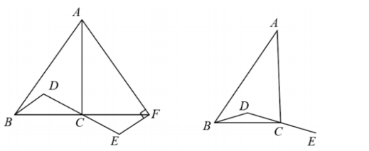(1) 如图 1, 延长 $B C$ 到点 $F$, 使得 $C F=B C$, 连接 $A F, E F$. 若 $A F \perp E F$, 求证: $B D \perp A F$;