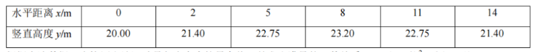 (1) 第一次训练时, 该运动员的水平距离 $x$ 与坚直高度 $y$ 的几组数据如下: