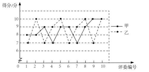 某校举办c哥唱祖国演唱比赛, 十位评委对每位同学的演唱进行现场打分, 对参加比赛的甲、