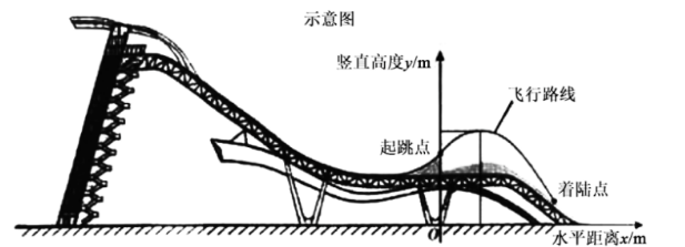 单板滑雪大跳台是北京冬奥会比赛项目之一, 举办场地为首铜滑雪大跳台. 运动员起跳后的飞 行路线可以看作是抛物线的一部分. 建立如图所示的平面直角坐标糸, 从起跳到着陆的过程中, 运动员 的竖直高度 $y$ (单位: $m$ ) 与水平距离 $x$ (单位: $m$ ) 近似满足函数关系 $y=a(x-h)^{2}+k(a < 0)$.