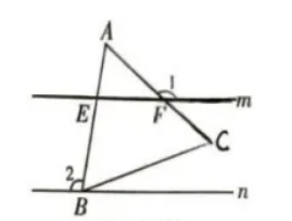如图,直线 $m / / n, \triangle A B C$ 是等边三角形, 顶点 $B$ 在直线 $n$ 上, 直线 $m$交 $A B$ 于点 $E$, 交 $A C$ 于点 $F$, 若 $\angle 1=140^{\circ}$, 则 $\angle 2$ 的度数是