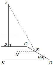 如图, 在某信号塔 $A B$ 的正前方有一斜坡 $C D$, 坡角 $\angle C D K=30^{\circ}$, 斜坡的顶端 $C$ 与塔底 $B$ 的距离 $B C=8$ 米, 小明在斜坡上的点 $E$ 处测得塔顶 $A$ 的仰角 $\angle A E N=60^{\circ}, C E=4$ 米, 且 $B C / / N E / / K D, A B \perp B C$ (点 $A, B, C, D, E, K, N$ 在同一平面内).