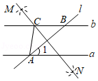 如图, 已知 $a / / b$, 直线 $l$ 与直线 $a 、 b$ 分别交于点 $A 、 B$, 分别以点 $A 、 B$ 为圆心, 大于 $\frac{1}{2} A B$ 的长为半径画弧, 两弧相交于点 $M 、 N$, 作直线 $M N$, 交直线 $b$ 于点 $C$, 连接 $A C$, 若 $\angle 1=40^{\circ}$, 则 $\angle A C B$ 的度数是 ( )