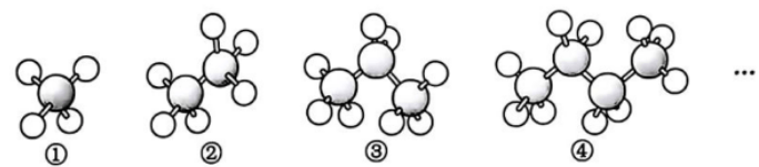 烷烃是一类由碳、氢元素组成的有机化合物质,下图是这类物质前四种化合物的分子结构模型图,其中灰球代表碳原子,白球代表氢原子. 第11种如图(1)有4个氢原子,第2种如图(2)有6个氢原子,第3种如图(3)有8个氢原子,......按昭这一规律,第10种化合物的分子结构模型中氢原子的个数是