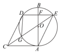 如图,以 $A B$ 为直径的 $\odot O$ 与 $A C$ 相切于点 $A$ ,以 $A C$ 为边作平行四边形 $A C D E$ ,点 $\mathrm{D}$ 、 E均在 $\odot O$ 上, $D E$ 与 $A B$ 交于点 $F$ ,连接 $C E$ ,与 $\odot O$ 交于点 $G$ ,连接 $D G$. 若 $A B=10, D E=8$ ,则 $A F=$ $\qquad$ . $D G=$