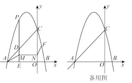 (2)点 $P$ 是射线 $C A$ 上方抛物线上的一动点,过点 $P$ 作 $P E \perp x$ 轴,垂足为 $E$ ,交 $A C$ 于点 $D$. 点 $M$ 是线段 $D E$ 上一动点, $M N \perp y$ 轴,垂足为 $N$ ,点 $F$ 为线段 $B C$ 的中点,连接 $A M, N F$. 当线段 $P D$ 长度取得最大值时,求 $A M+M N+N F$ 的最小值;