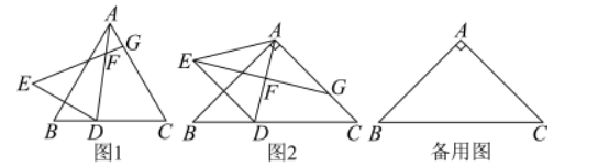 (3)如图2,若 $\angle B A C=90^{\circ}$ ,点 $D$ 从点 $B$ 移动到点 $C$ 的过程中,连接 $A E$ ,当 $\triangle A E G$ 为等腰二角形时,请直接写出此时 $\frac{C G}{A G}$ 的值.
